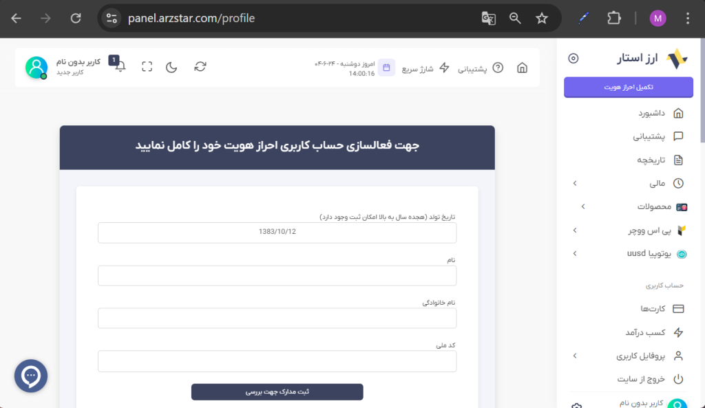 آموزش نحوه ثبت نام و احراز هویت در پنل ارز استار